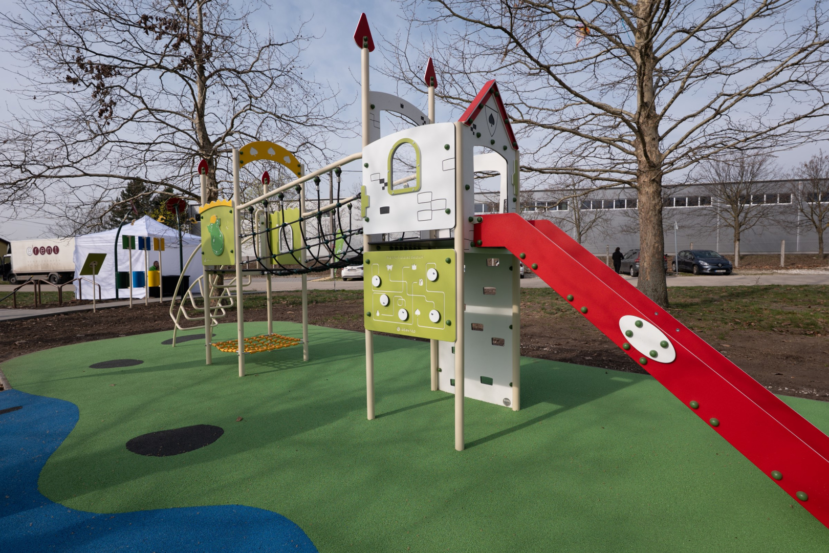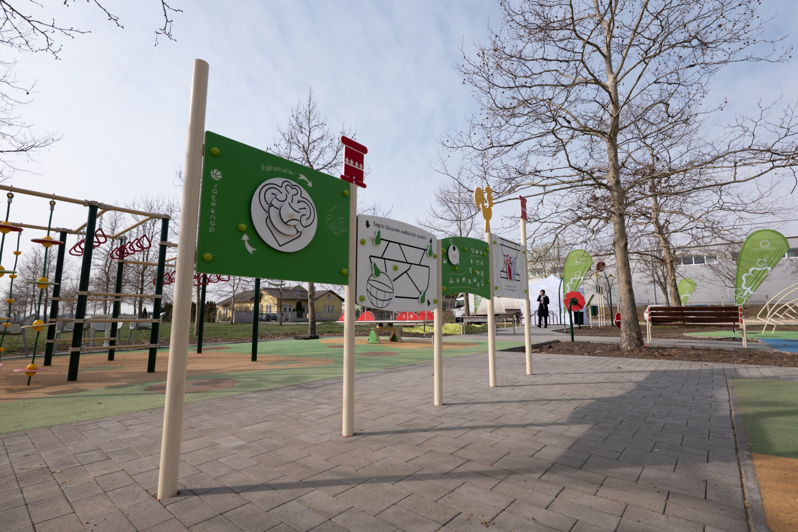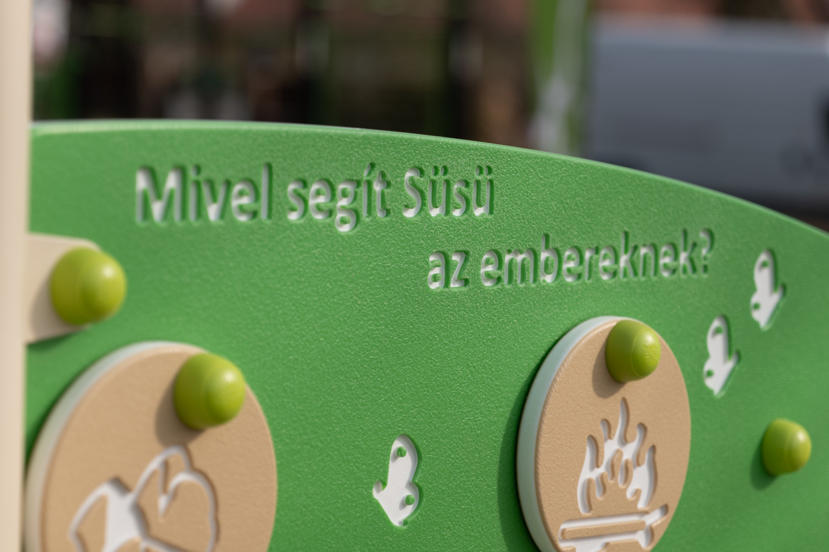 A mesebeli motívumok mellett a pákozdi vár történetének elemei is megjelennek a játéktérben, így a helyi identitás ezúttal is fontos szerepet kapott a kialakításban. Az edukációs panelen a meséből ismert idézetek olvashatók, a játékelemek pedig szintén a történethez kapcsolódó élményeket kínálnak a gyerekeknek.