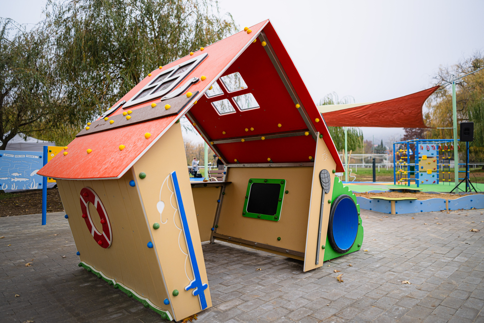 A Balaton parti települések közül először Révfülöpön nyílt befogadó játszótér, melynek a hajózás világa a témája. Vitorlásokat idéző színek és formák, akadálymentes házikó, csúszdás kombinált eszköz és emelt tálcás homokozó teszik különlegessé ezt a közösségi teret. A játszótér megközelítésében is akadálymentesített: mozgáskorlátozott parkoló, illetve a parkolótól a bejáratig kiépített szilárd burkolat biztosítja a kényelmes és biztonságos megközelítést mindenki számára.