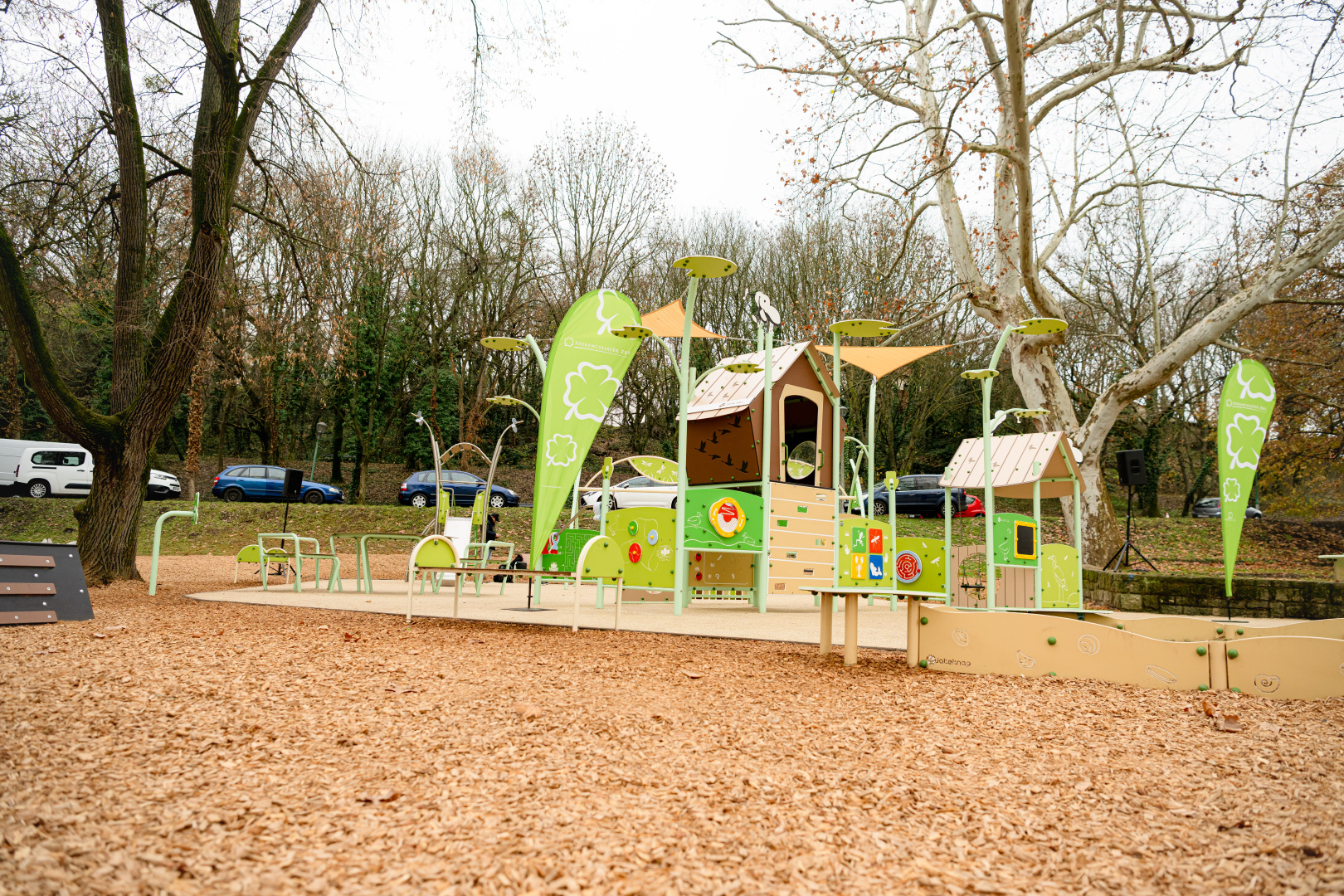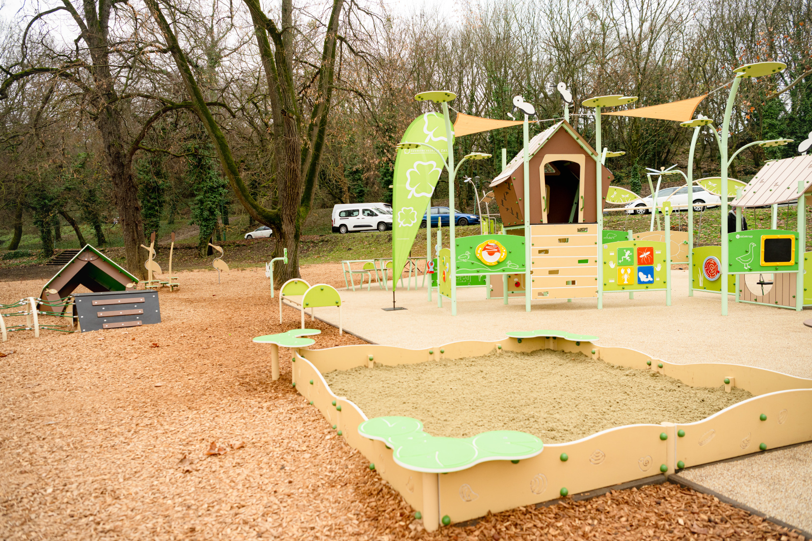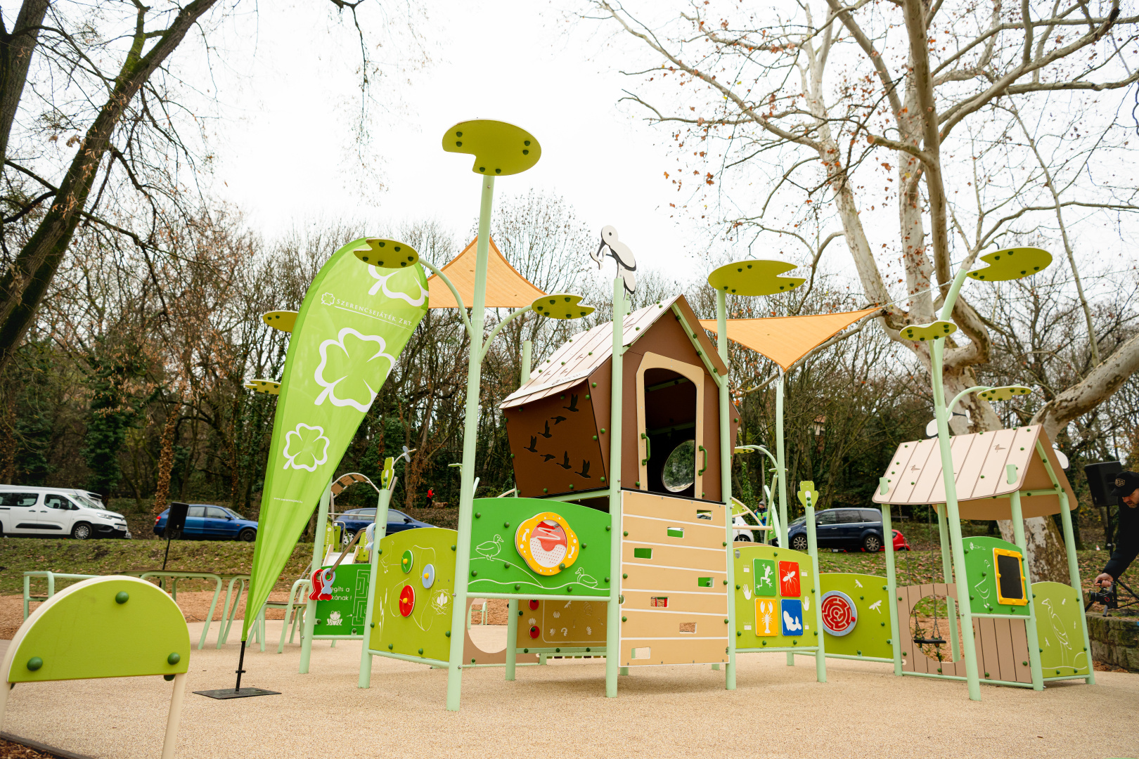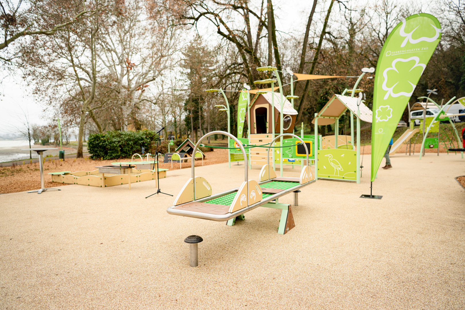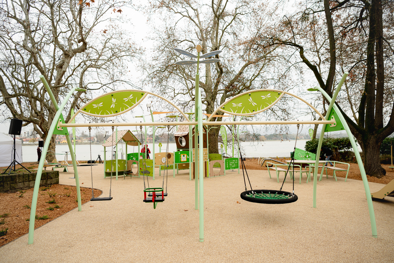 Az Öreg-tó természeti értékeinek figyelembevételével, az örökségvédelmi területek szabályozását betartva épült meg Tatán „A játék összeköt!” program keretében létesített 38. inkluzív közösségi tér. A tervezők – a helyszínhez igazodva – a vízi világot választották a játszótér fő tematikájának. A visszafogott színvilágú, a természeti környezetbe illeszkedő tér játékelemein megjelennek vízi és vízparti élőlények, köztük talán a leglátványosabb a szitakötőt formázó háromállású extra hintaállvány, a horgász házikó, illetve a természetet idéző panellabirintus.
